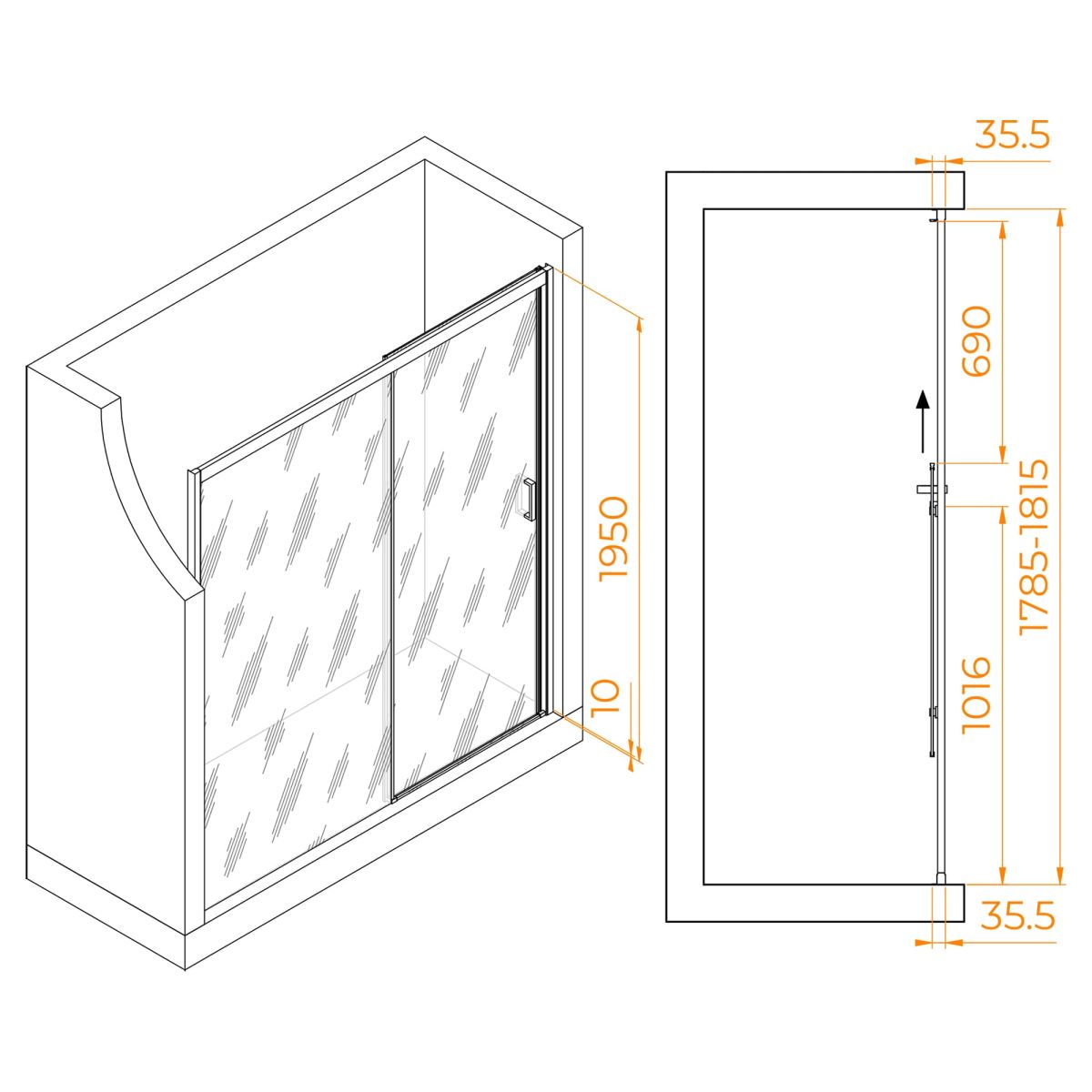 Конструкция дверей раздвижная, это позволяет максимально использовать доступное пространство в ванной комнате. Роликовый подшипник и регулируемый профиль упрощают установку и обеспечивают гладкое и бесшумное движение дверей.