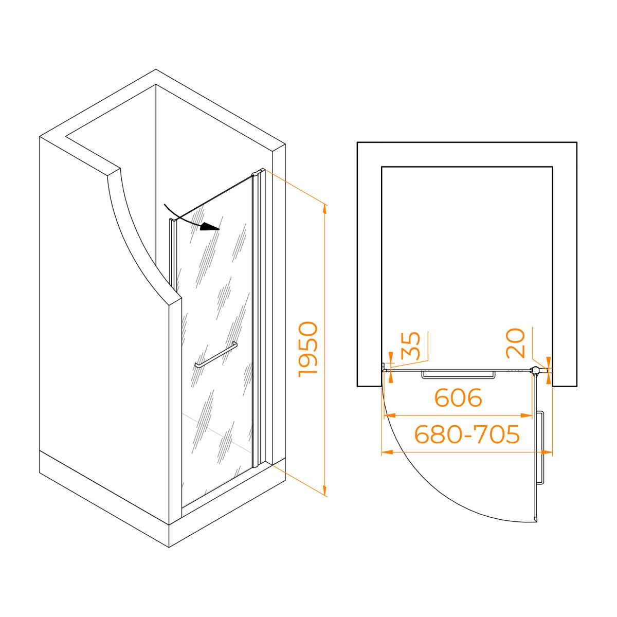 Эта распашная дверь оснащена маятниковыми петлями, обеспечивающими открытие только наружу, а также функцией подъема двери для легкости использования. Магнитный уплотнитель гарантирует герметичность, соответствующую 2 классу защиты, что предотвращает утечки и брызги. Покрытие стекла с эффектом «Антикапля» (Easy Clean) значительно упрощает уход за дверью, а регулируемый профиль позволяет адаптировать установку под любые условия. Монтаж двери универсален, что делает её удобным выбором как для установки на поддон, так и на плитку. Стальная ручка сочетает в себе стиль и функциональность. Она не только служит удобным способом открывания и закрывания двери, но также выполняет роль полотенцедержателя, добавляя дополнительное удобство в использование пространства ванной комнаты.