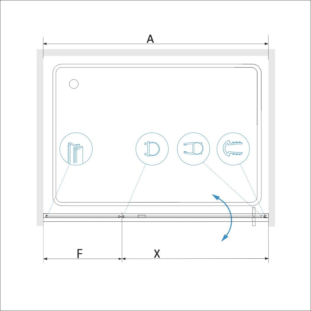 Эта душевая дверь относится к классу герметичности 1, что гарантирует эффективное предотвращение утечки воды из душевой зоны. Конструкция распашной двери, также известная как маятниковая дверь, обеспечивает легкий доступ и добавляет изысканности вашей ванной комнате.