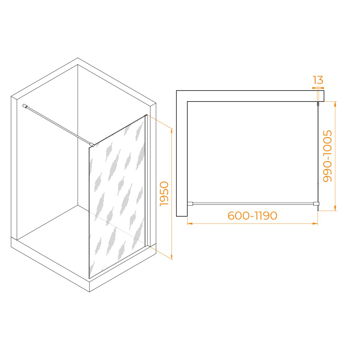 Использование регулируемого профиля позволяет настроить высоту перегородки под свой размер, создав комфортное душевое пространство. Высота перегородки составляет 195 см, что является оптимальным параметром для большинства пользователей.