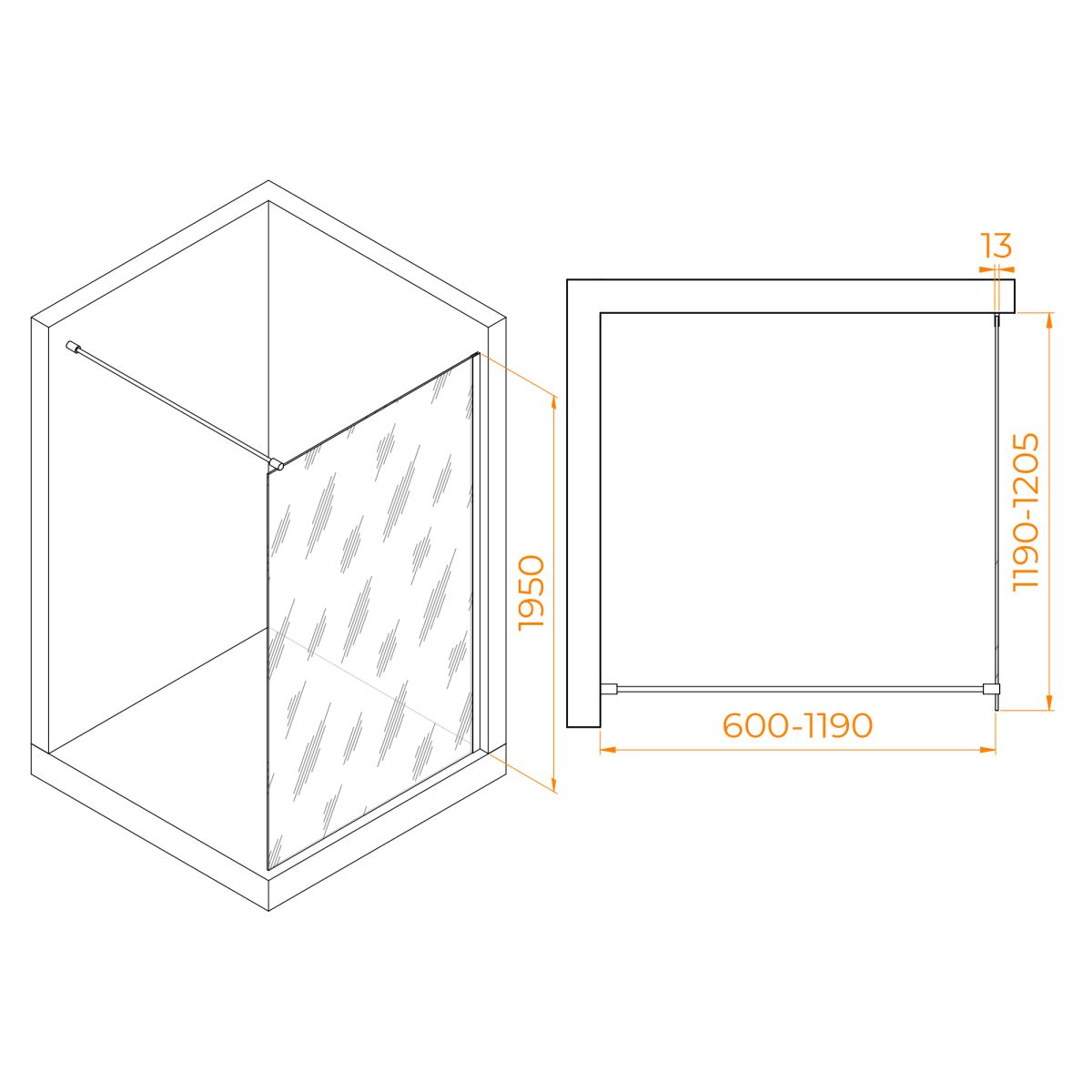 Высота перегородки для душа RGW WA-010 составляет 195 см, что обеспечивает комфортное использование для большинства людей и позволяет избежать протекания воды через край перегородки.