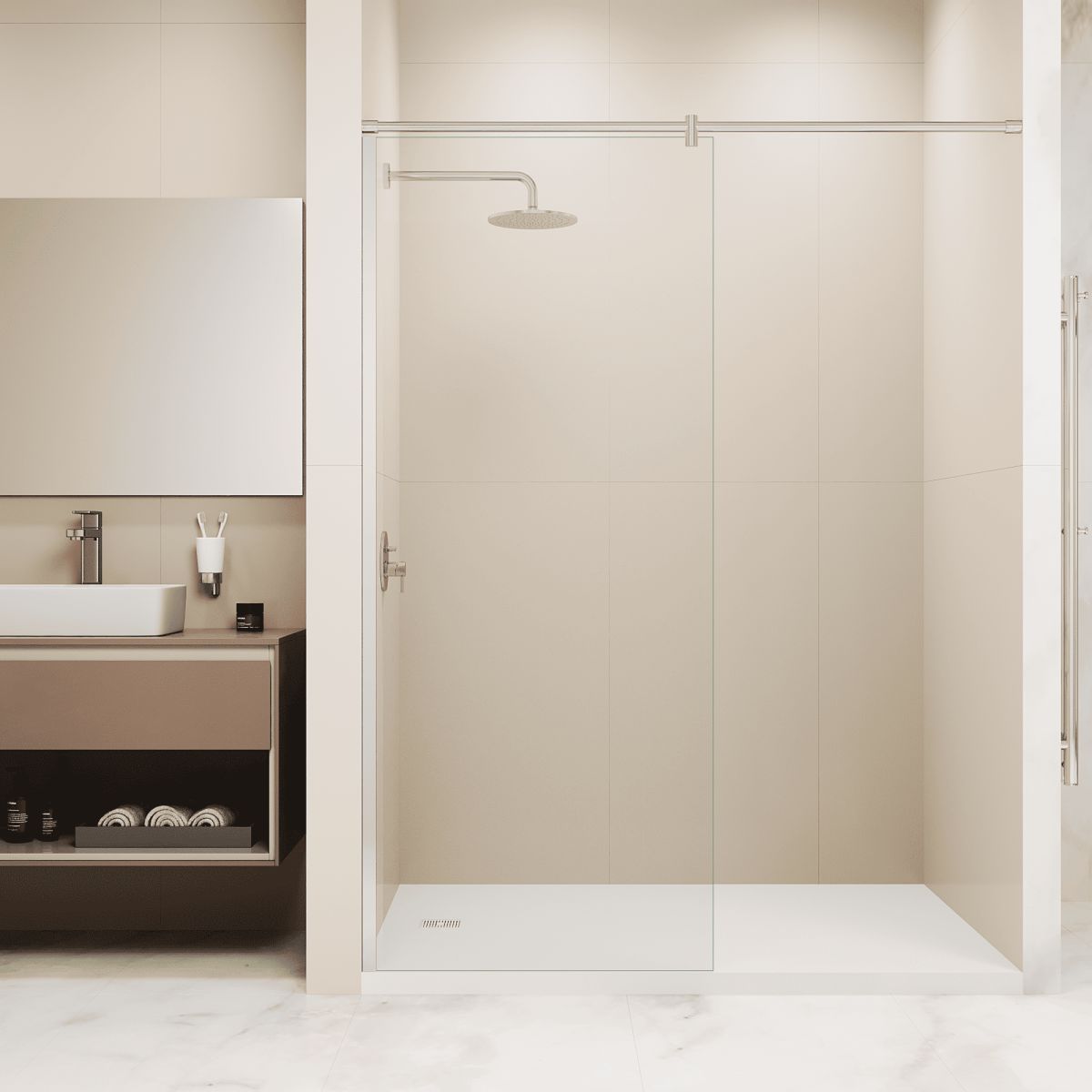 Кроме того, этот продукт обеспечивает регулируемый профиль для универсальной установки в вашей ванной или душевой кабине. Вы можете настроить размеры перегородки, чтобы эффективно использовать пространство в ванной комнате. Анодированный алюминий, который используется для производства профиля, обеспечивает долговечность продукта, в то время как серия Walk In позволяет вам полностью насладиться комфортом и свободой в вашей душевой кабине.