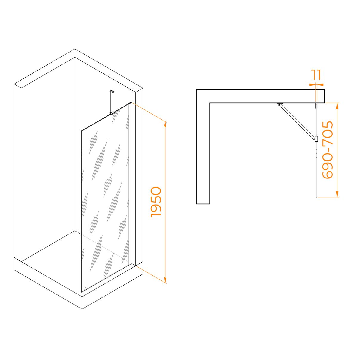 Профиль имеет цвет хром, что придает перегородке для душа современный и элегантный вид. Высота перегородки составляет 195 см, что обеспечивает комфортное использование для большинства пользователей.