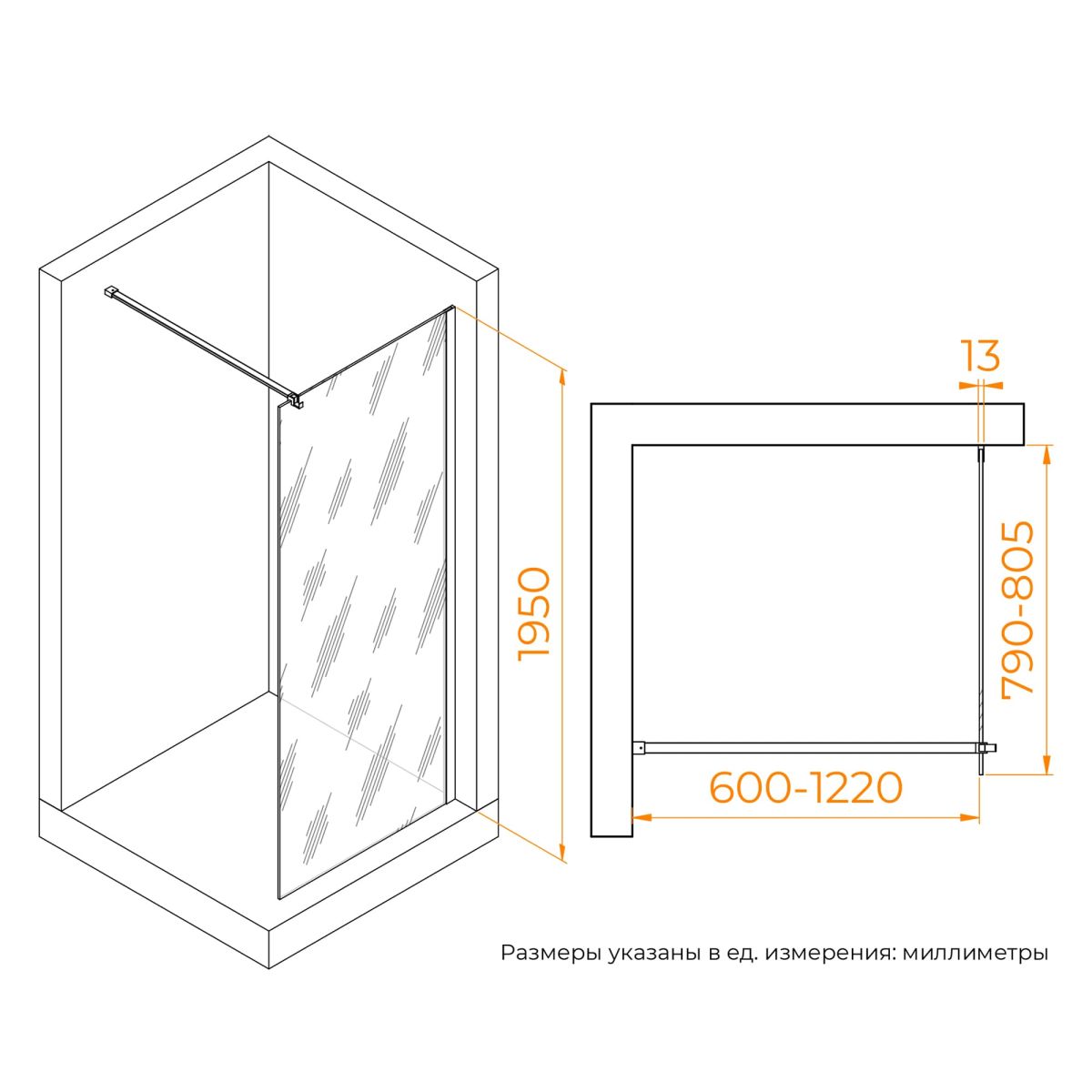 Длина штанги: 1220 мм - На этапе монтажа для изменения размера душевого пространства штангу можно уменьшать до необходимого размера путем подрезки.