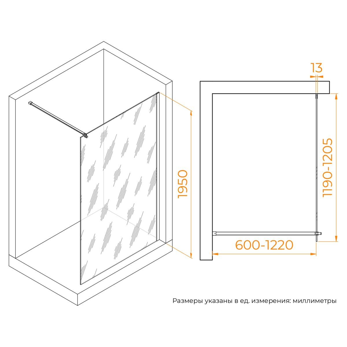 Высота: 1950 мм - позволяет комфортно использовать душевую перегородку даже людям высокого роста.