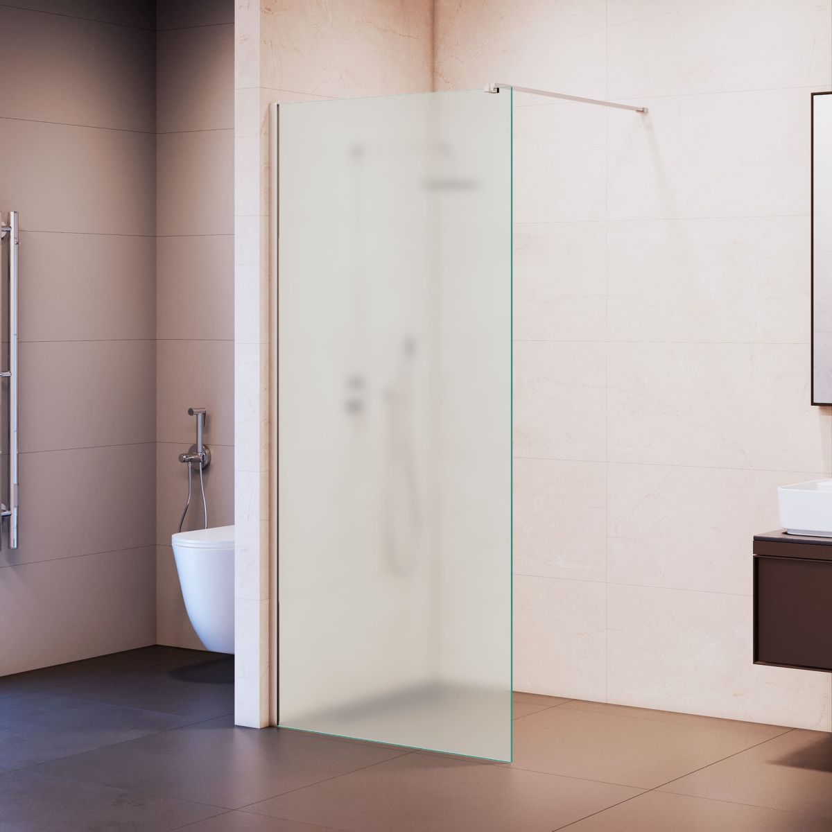 Закалённое стекло толщиной 8 мм имеет высокую прочность и безопасность. Бескаркасная модель, однако Торец по всему периметру стекольного полотна обработан евро кромкой, что обеспечивает высокую устойчивость к торцевым ударам. При расколе бьется в мелкие гранулированные осколки.