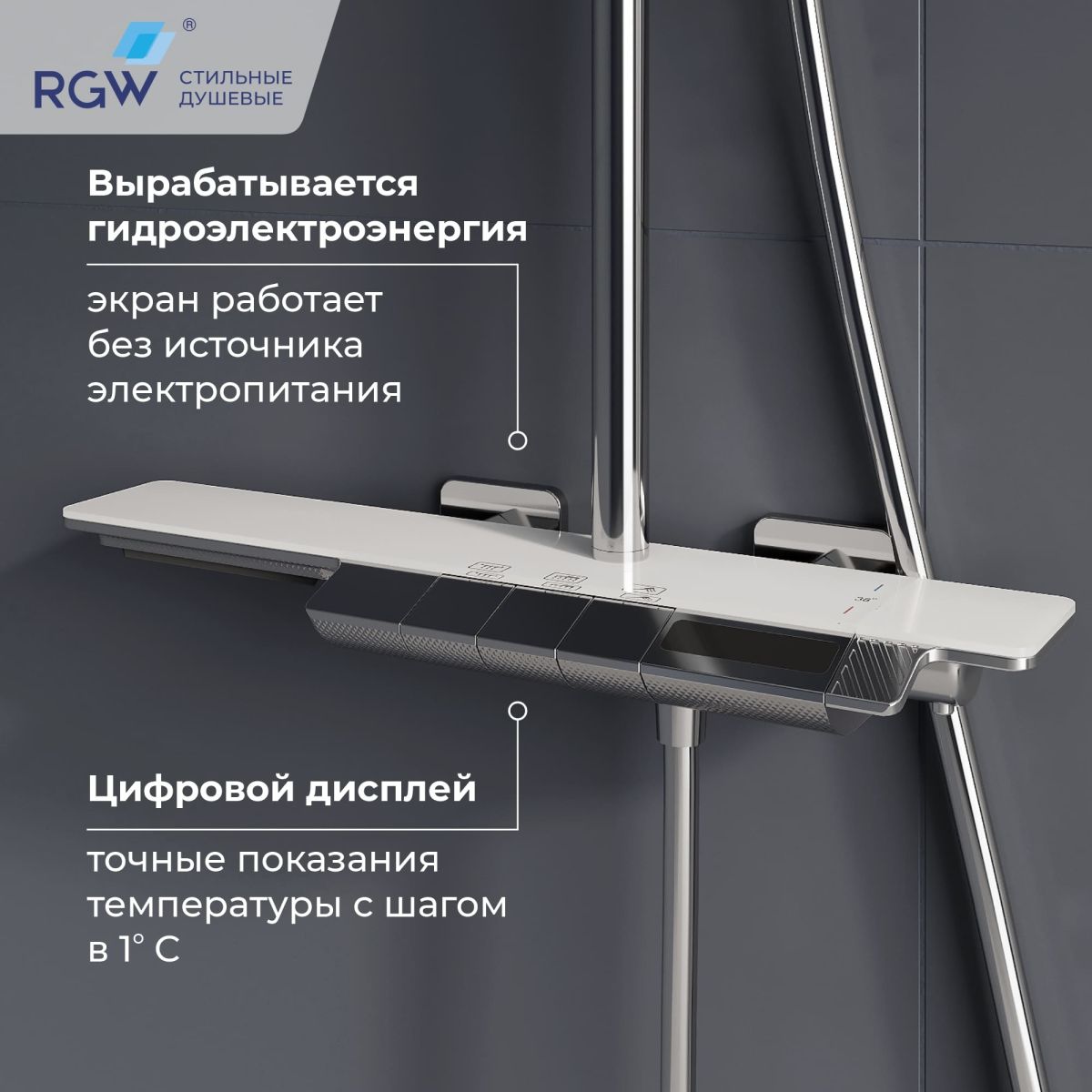 - Вместительная стеклянная полка для душевых принадлежностей;