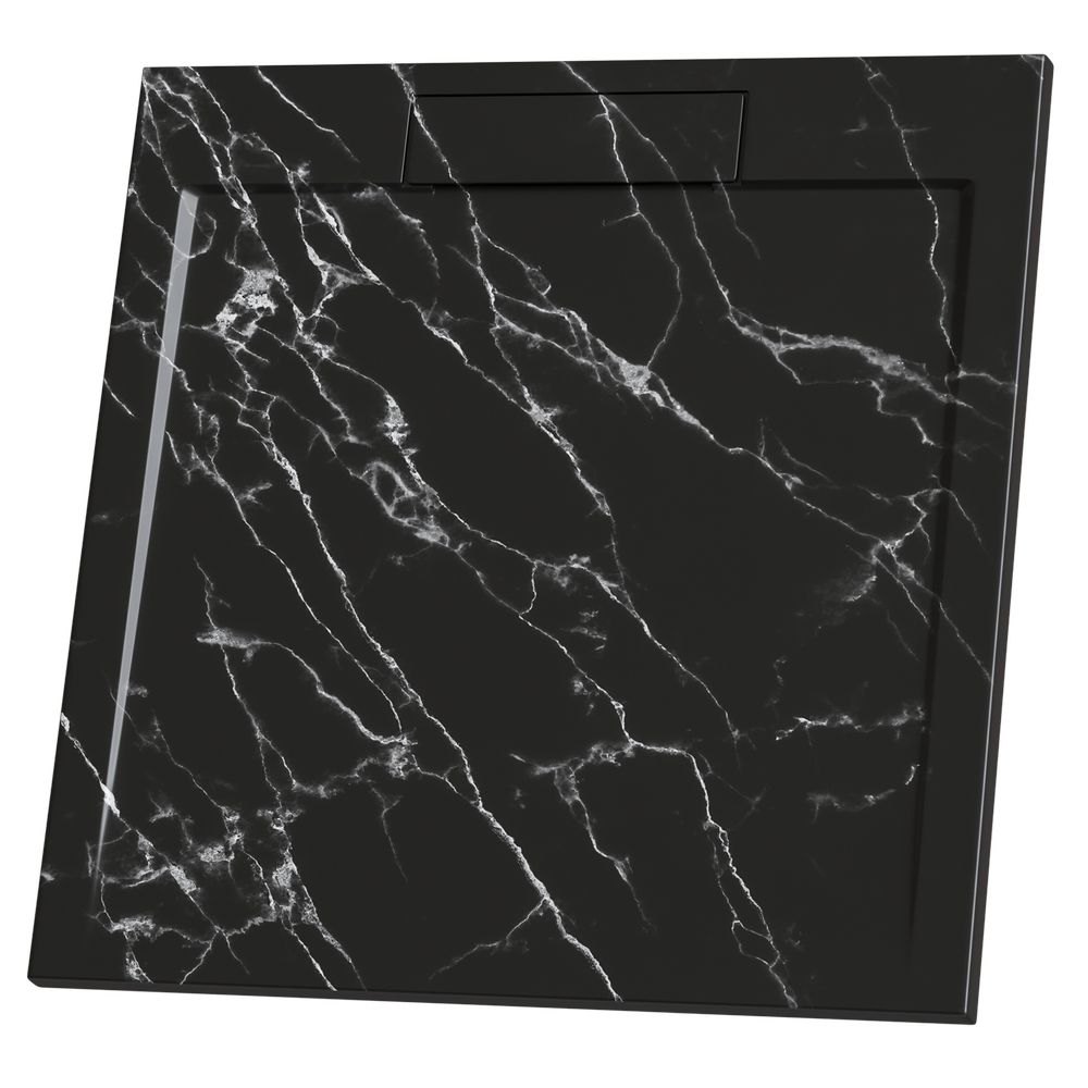 В серии душевых поддонов Stone Tray новинка - поддон в самом актуальном дизайне под натуральный черный мрамор теперь и в квадратной форме.