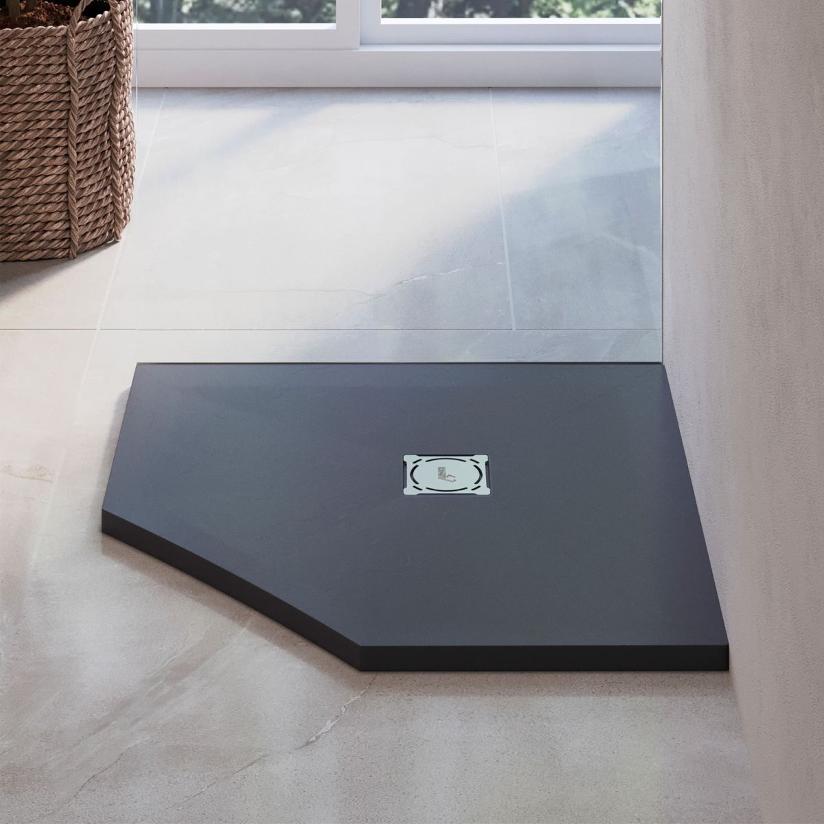 В серии душевых поддонов Stone Tray появилась новинка уникальной трапециевидной формы в остро-модном цвете «графит».
