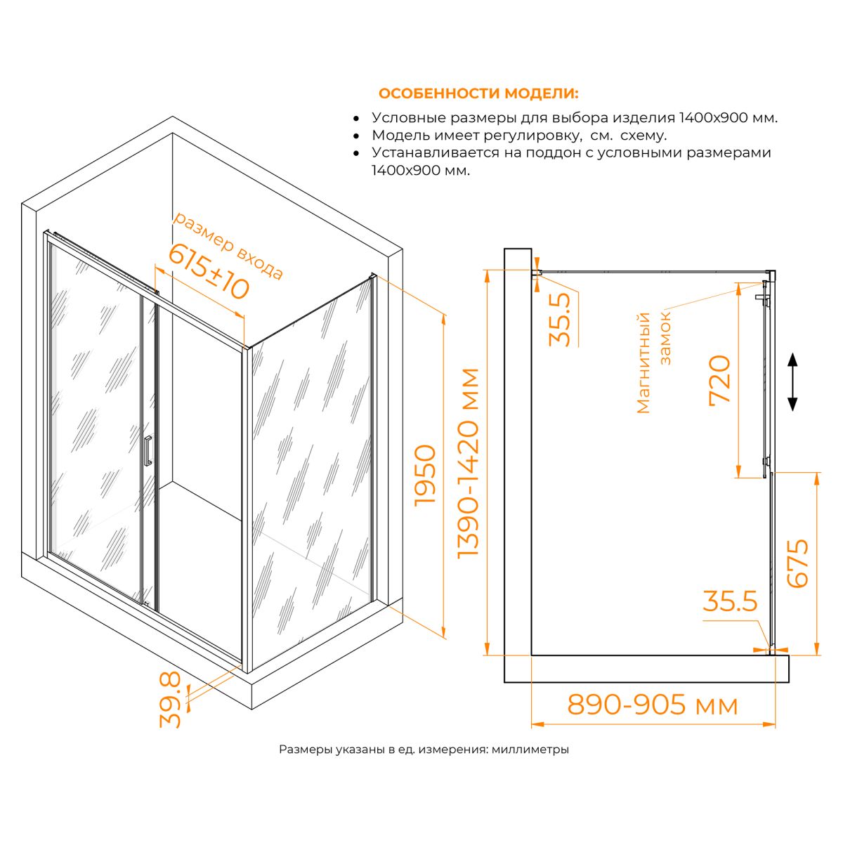 Душевой уголок RGW CL-133B (CL-13B + Z-03B) 1400x900