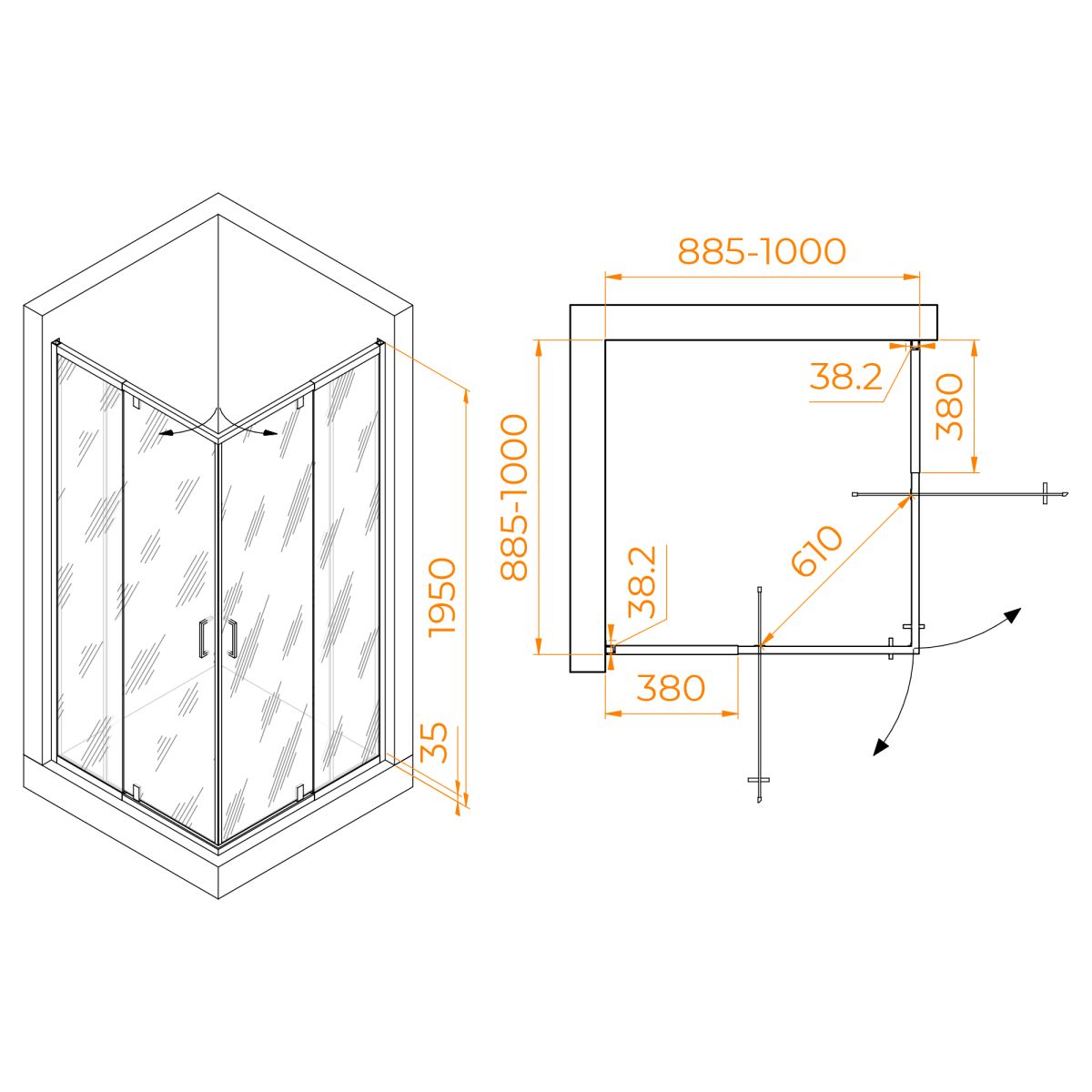 Двери данного душевого уголка распашные, благодаря чему достигается максимальная удобность при использовании, а также сэкономлено пространство в ванной комнате. Конструкция дверей облегчает их открывание и закрывание, что особенно важно для людей с ограниченными физическими возможностями.