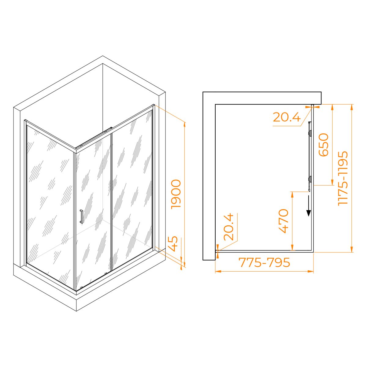 Высота душевого угла составляет 1900 мм, что позволит вам комфортно принимать душ, даже если вы высокого роста. Конструкция дверей раздвижная, что экономит место в ванной комнате. Этот душевой уголок также имеет регулируемый профиль, что позволяет легко настроить его на любые условия установки.