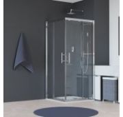 Инновационный механизм раздвижной системы при открытии плавно смещает дверь вдоль стационарного стекла при этом обеспечивая комфортный вход и просторное пространство внутри душевого угла.