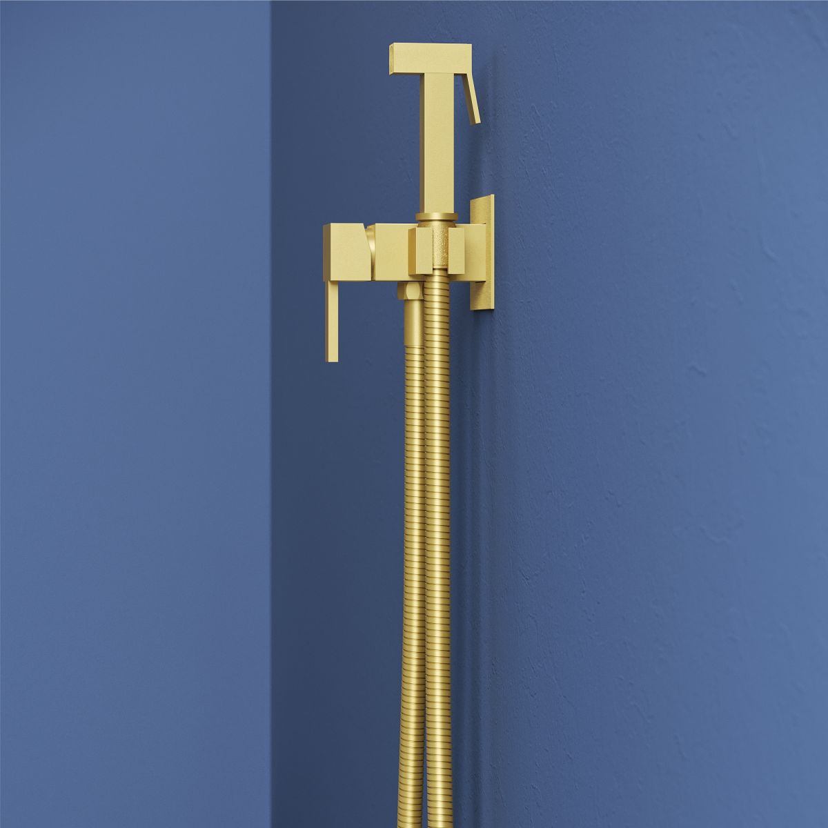 Смеситель квадратной формы с гигиенической лейкой, средняя струя. Струя из гигиенического душа выходит плотная, упругая и направленная. Она может быть как мягкой рассеянной, так и интенсивной, в зависимости от выбранного напора воды. Её температура легко регулируется от прохладной до комфортно тёплой. Вода подаётся равномерно без пульсаций, обеспечивая точное и аккуратное очищение. Форма струи в этой модели узконаправленная, что делает её удобной для гигиенических процедур.