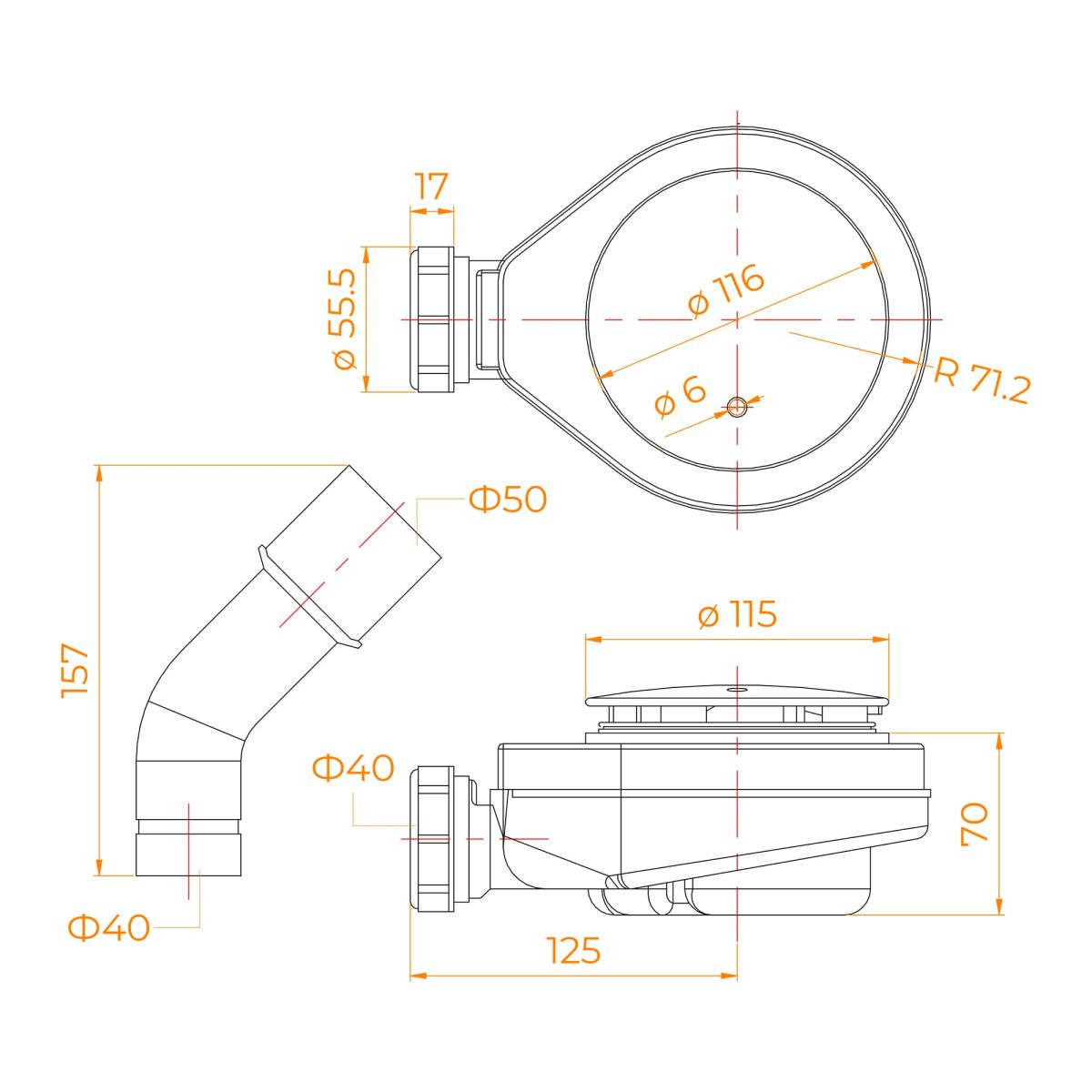 - Высокая пропускная способность сифона 40 л/мин. обеспечивает быстрый сток воды, что позволяет компенсировать отсутствие глубокой купели в поддоне.