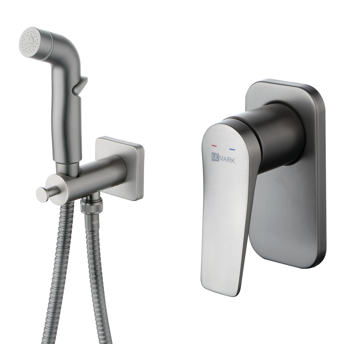 Смеситель Lemark Bronx LM3719GM с гигиеническим душем, встраиваемый