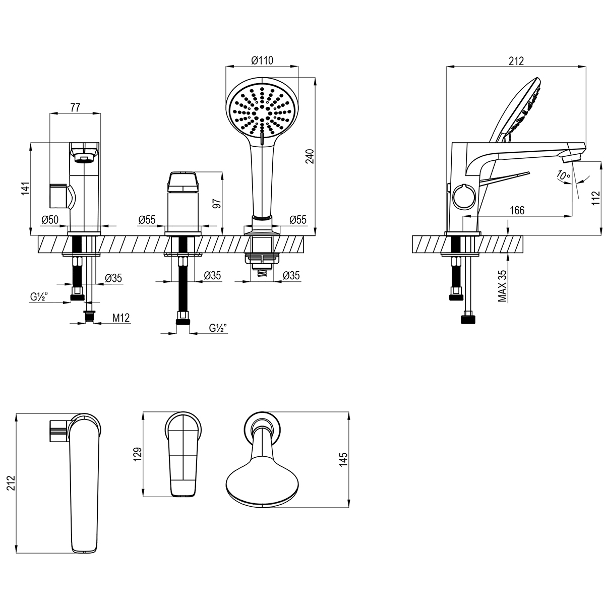 Смеситель Lemark Bronx LM3745MW на борт ванны