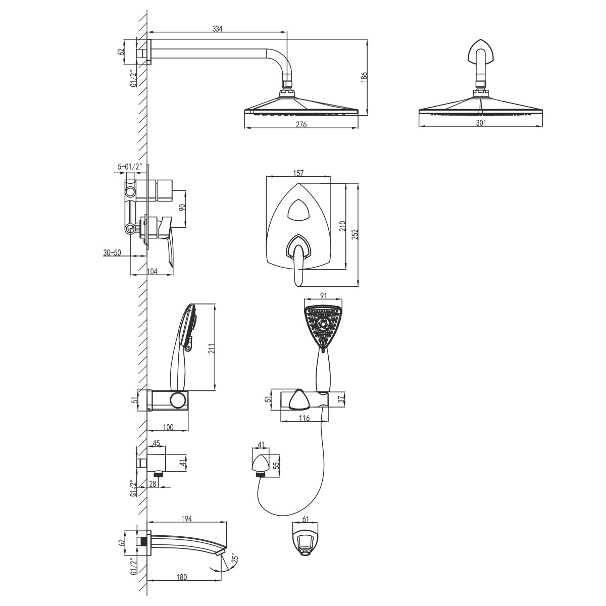 • Верхняя поворотная душевая лейка «Тропический дождь» 276х276х301 мм