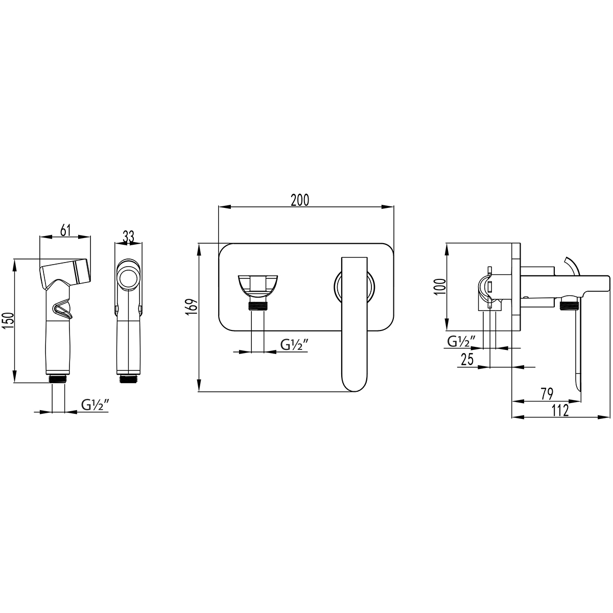 - Аксессуары в комплекте: лейка для биде с нажимным механизмом, душевой шланг 1,5 м