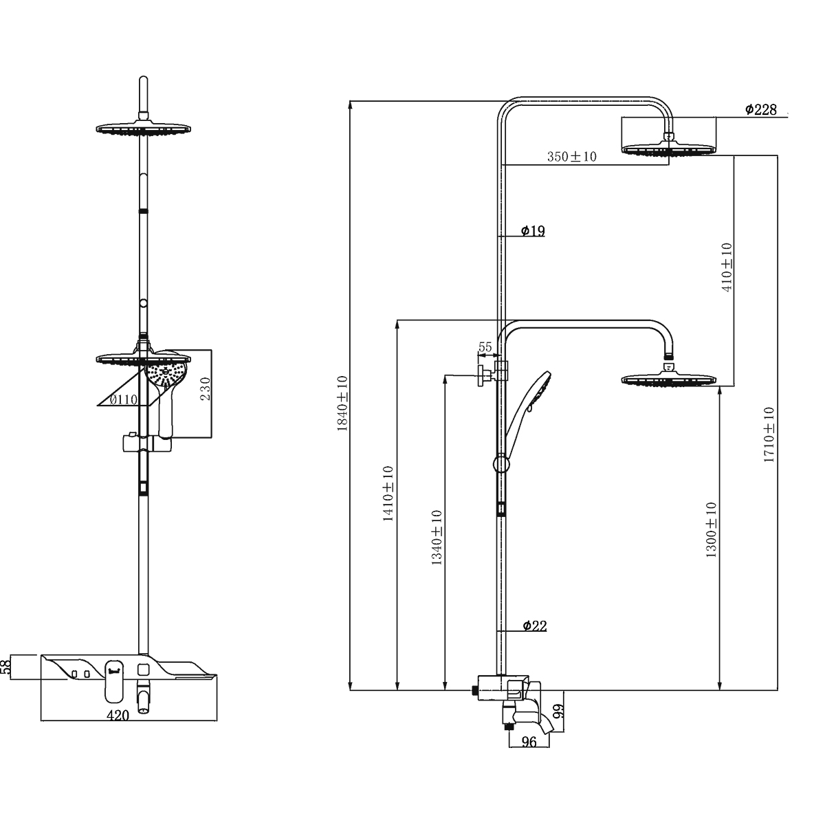 • Кнопочный переключатель (нажми-переключи) верхняя/ручная душевая лейка
