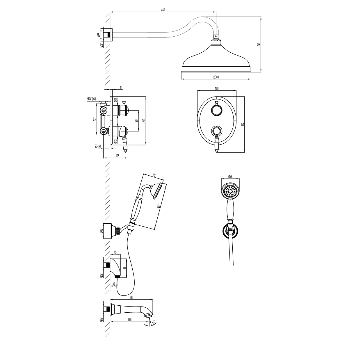 - Настенные крепления для душевых леек