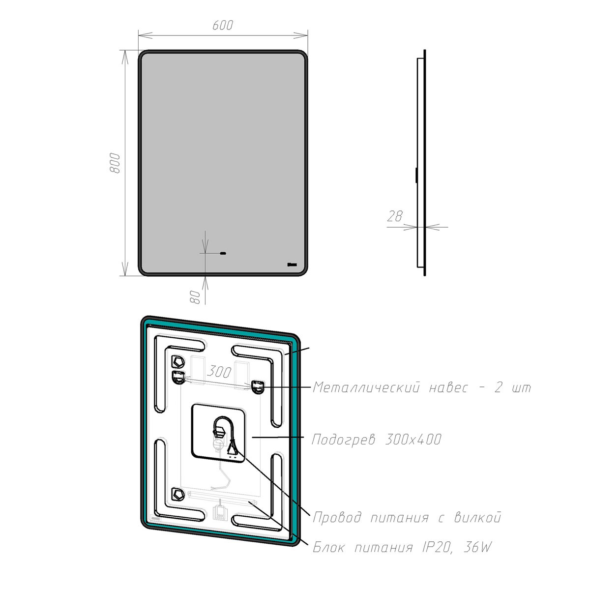 Зеркало Lemark MIOBLACK 60х80 см с интерьерной подсветкой, с подогревом
