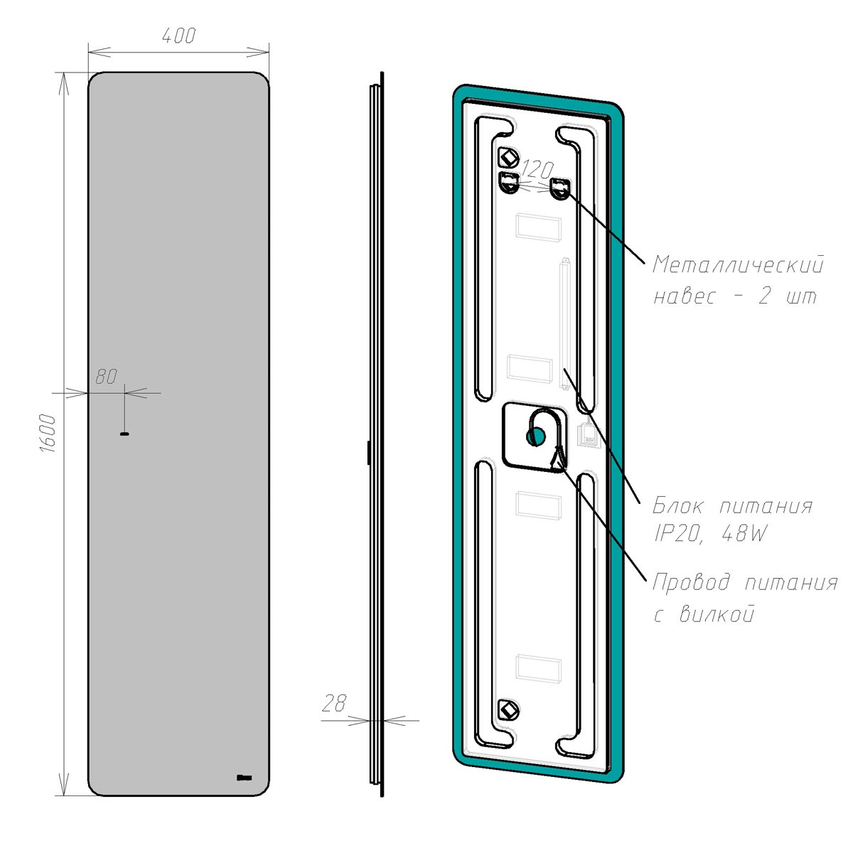 Зеркало Lemark OLSA 40х160 см с интерьерной подсветкой