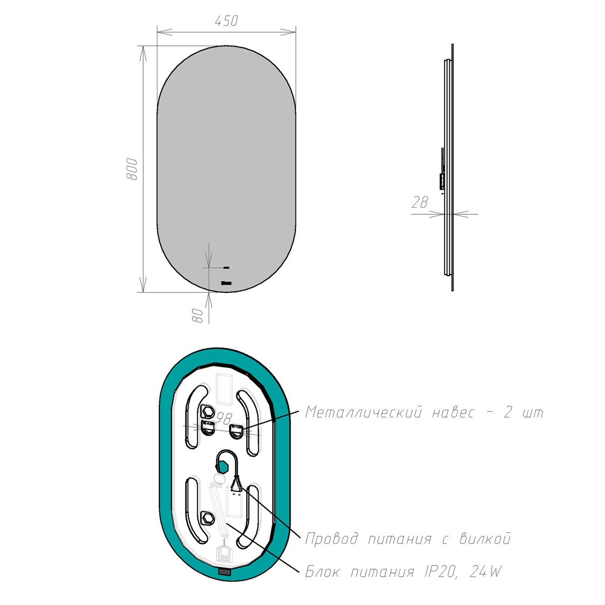 Зеркало Lemark OLSA 45х80 см овальное с интерьерной подсветкой