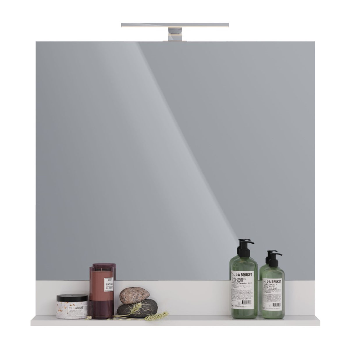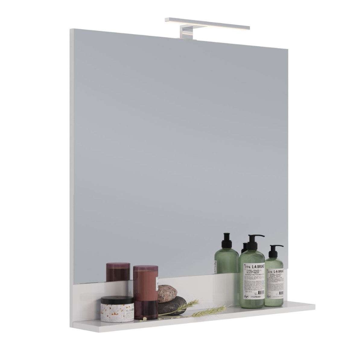 Зеркало Lemark ROMANCE 80 см с полкой, цвет: Белый глянец